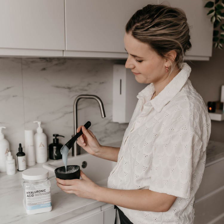 Reinigen, peeling met fruitzuur, onzuiverheden verwijderen, masker, serum & dagverzorging.