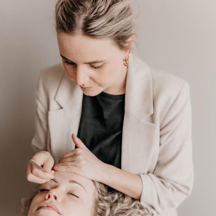 Wenkbrauwen epileren, reinigen, peeling, onzuiverheden verwijderen, bindweefsel massage, serum & dagverzorging.